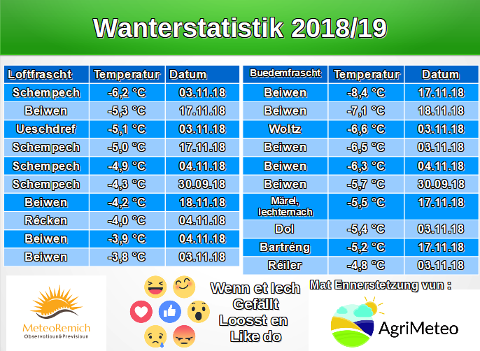 Dezember 2018 -0,5 bis +1 Grad Trend: normal bis leicht zu trocken
