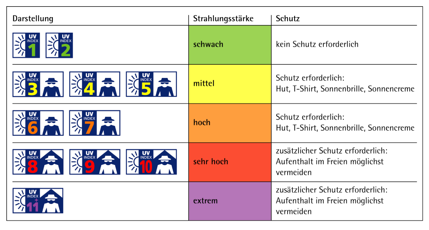 Hier sehen den maximalen UV-Index für die kommenden Tagen. Im Sommer ist ein Höchstwert von 8 bei uns möglich.